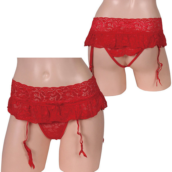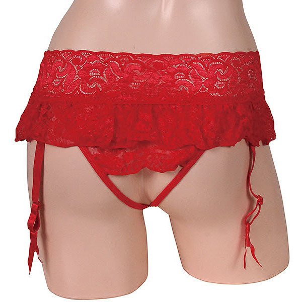 > セクシャルな魅力満載オープンショーツ一体型ガーターベルト レッド