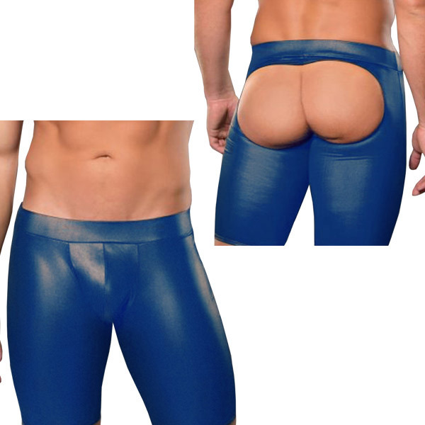 > うしろ姿で誘惑男のロングボクサーパンツ ブルー