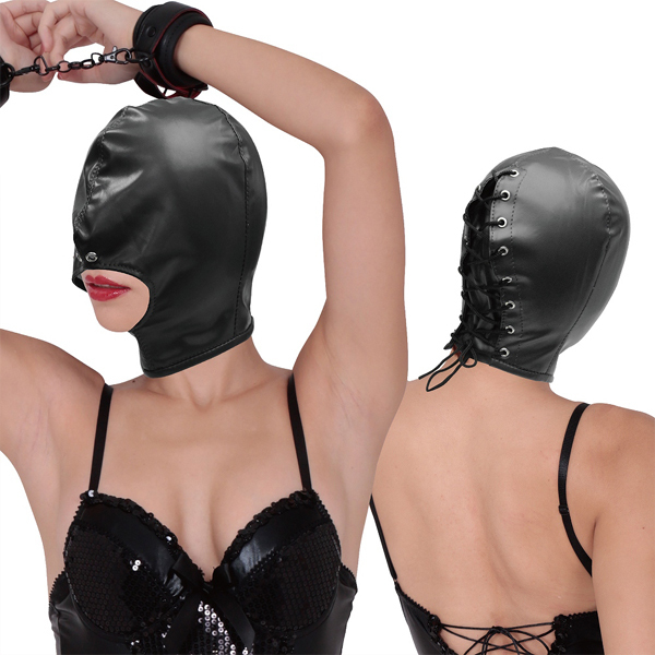 柔らかな質感のフェイクレザー製マウスオープンボンデージマスクインナーはフェルト加工で肌に優しい仕様。カラー:ブラック