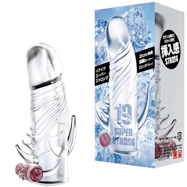 ガツンと挿れてスカッと昇天!イクイクスーパーストロング!2cm伸長でロングプレイを楽しもう♪更にモーターの振動でパートナーへの刺激もアップ!伸縮性抜群でジャストフィットの柔らか素材●使い切りローター付