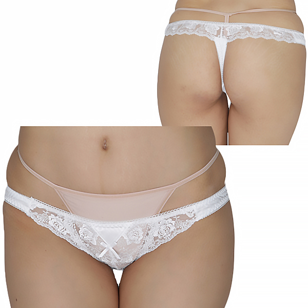 > 光沢柔らかポケット付きレースTバック ホワイト