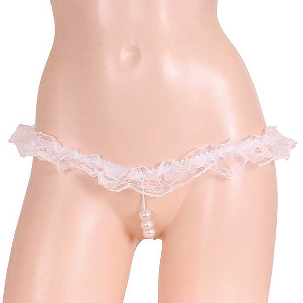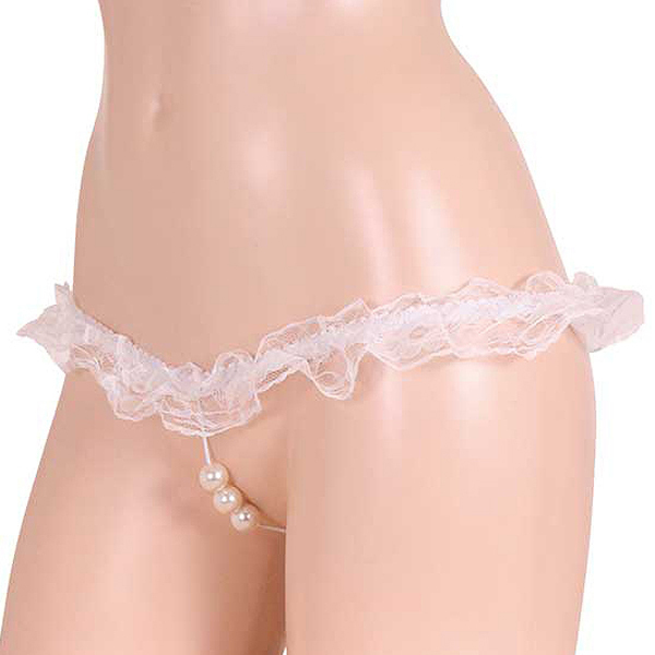 > エロさ急上昇の大粒3連パールひもパン ホワイト