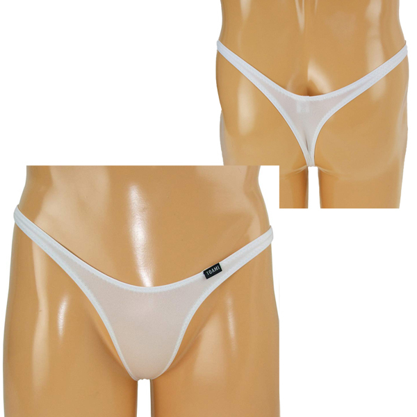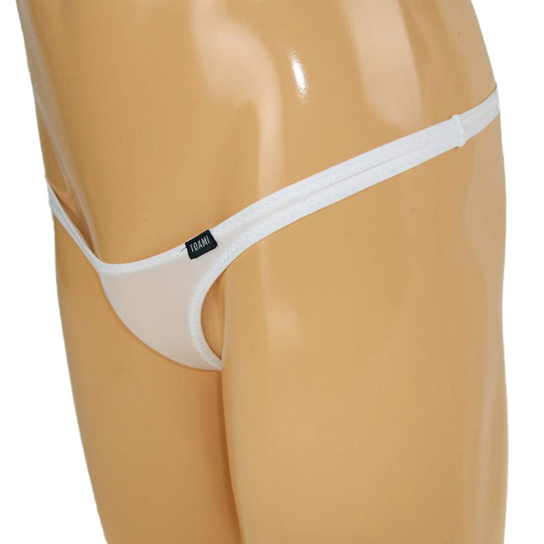 ギリギリまで魅せるハイレグ仕様の男性用Tバック(白)。下半身にフィットする伸縮性抜群なストレッチ素材を使用!T字デザインの大胆さに胸が高まります♪縫製が丁寧な日本製。