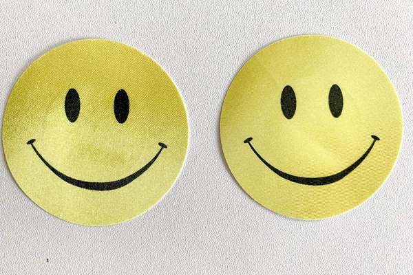 ニコニコマークが胸元で笑う可愛いニップレス2枚セット。肌保護のため乳首に触れる中央部分には粘着しない素材を使用!