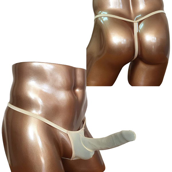 貴男の竿を包み込む収納ポケット付きメンズ用Tバック(クリーム)。お尻と男の象徴を際立たせるセクシーデザイン!逞しい身体をアピールしたい時に♪優しく手洗い、または網ネットでの洗濯をお願いします。
