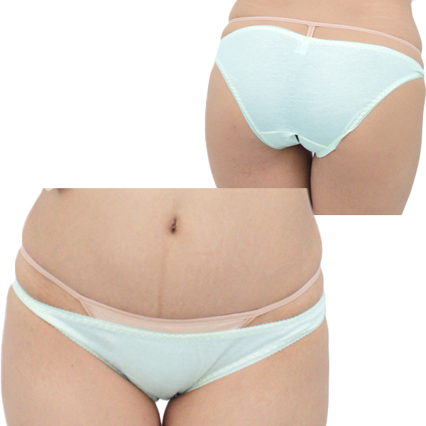 肌触り柔らかく伸縮性の高い綿素材を使用したインゴム仕様の日本製フルバック(水色)。一見、純粋そうに見えるもののクロッチ部分がオープンになったセクシーなデザイン!身体に程よくフィットするので穿き心地抜群です♪