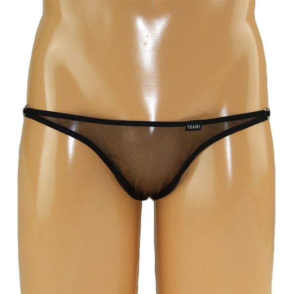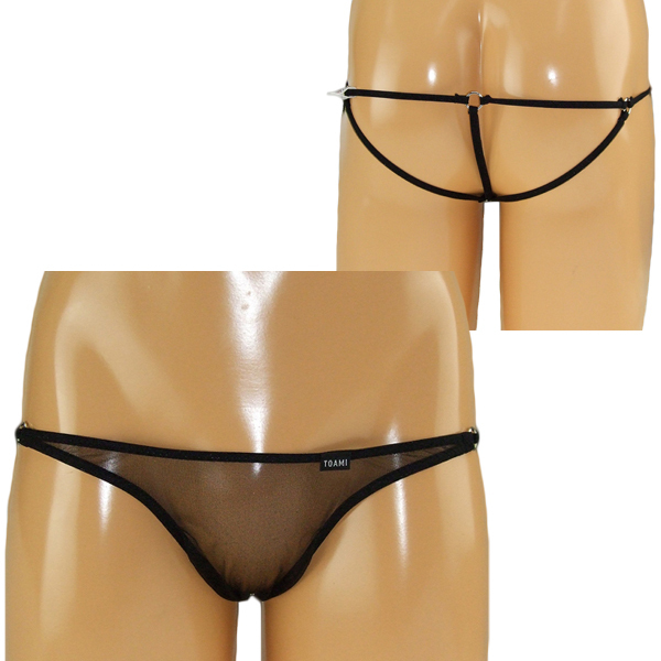キラキラとした極薄シースルー生地で大胆かつセクシーに見せる日本製オープンショーツ(黒)。背面は3本紐で仕立てたオープン仕様で、スケスケ生地と紐をメタルリングでジョイントしたお洒落なデザイン!男の色気をたっぷりアピールできるメンズ用オープンショーツです。