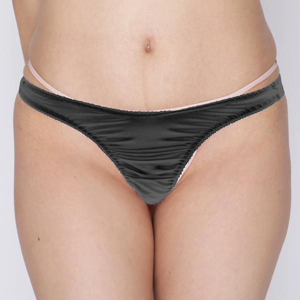 上品な光沢が美しいシンプル無地の日本製Tバック大きめサイズ(黒)。敢えて飾らず穿き心地や使いやすさを追求したシンプルデザイン!上下左右に伸縮性の高いストレッチ素材を使用で日常使いにも最適な一枚です。