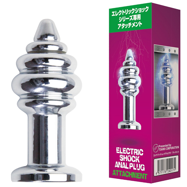 「エレクトリックショックバットプラグ(b28370)」や「エレクトリックショックコックループ(b29062)」など、エレクトリックショックシリーズと組み合わせて使える専用アタッチメント。リモコンに接続するだけで、ビリビリと痺れるような電流責めを手軽に味わえる!電撃低周波パルスを体感できる金属製のアナル専用プラグ。※本商品単体での使用不可