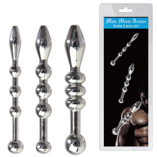 硬質なメタルボディが未知なる扉を開く!凹凸刺激か体感できるビーズタイプの尿道ブジー3点セット。煮沸消毒可能な金属製で衛生的に使える!個人の身体に合わせたサイズで楽しめる小・中・大の3本セットです。
