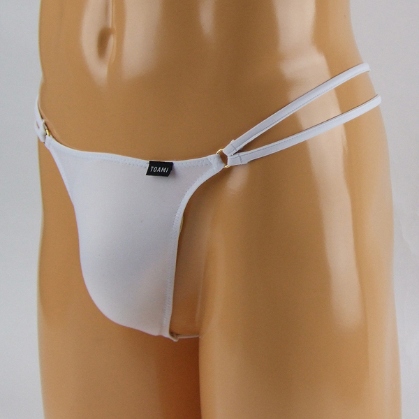腰周りのダブルストリングデザインがお洒落な日本製のメンズ用Gスト(白)。上下左右に伸縮性のある2wayストレッチ生地が優しく包みこむ♪男らしくセクシーに演出する男性用Gストリング。