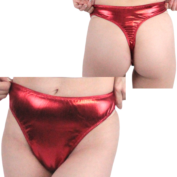 伸縮性抜群!重厚な光沢を放つレッドカラーの日本製Tバック。ストレッチ性のあるメタリック生地を使用!ダンス衣装やコスプレ衣装のインナーに◎Mサイズ