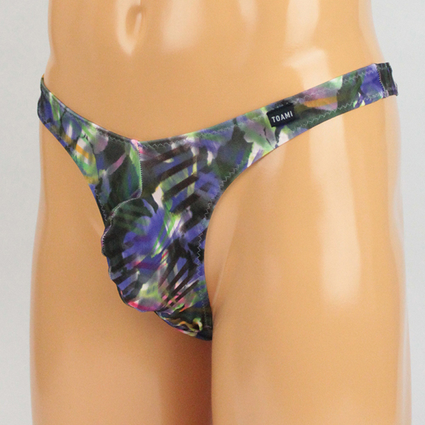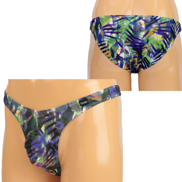 > メンズ ストレッチ幾何学プリントもっこりフルバック パープル
