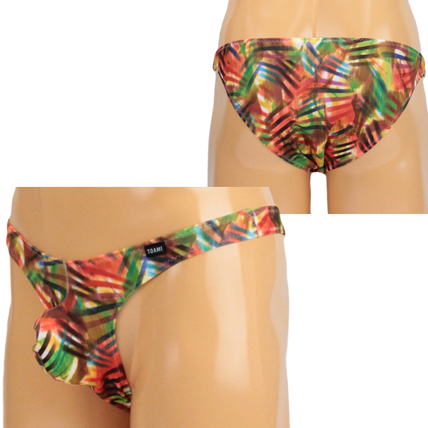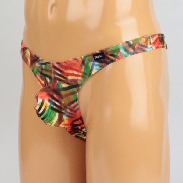 > メンズ ストレッチ幾何学プリントもっこりフルバック オレンジ