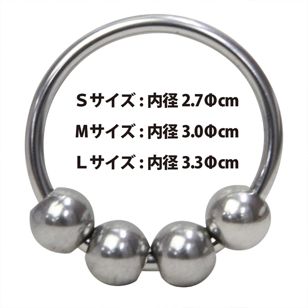 可動する4つの金属ボールでパートナーと刺激を分かち合う!スタイリッシュなメタル製のコックリング。内径3.3cmのLサイズ