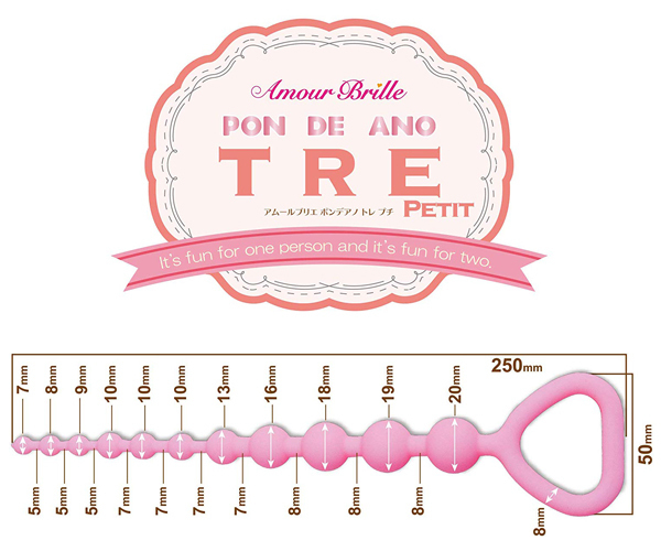 あの有名ドーナツに似た可愛い形状が特徴的!「ポンデ アノ」より肌に優しいシリコン素材を100%使用したアナル専用グッズ♪挿入しやすく初心者さんのお尻開発に最適な先端7mmの極小サイズから、最大径20mmまで9個のビーズが連なったポンデアノ。キュートな見た目ながらもしっかりお楽しみいたたけます♪