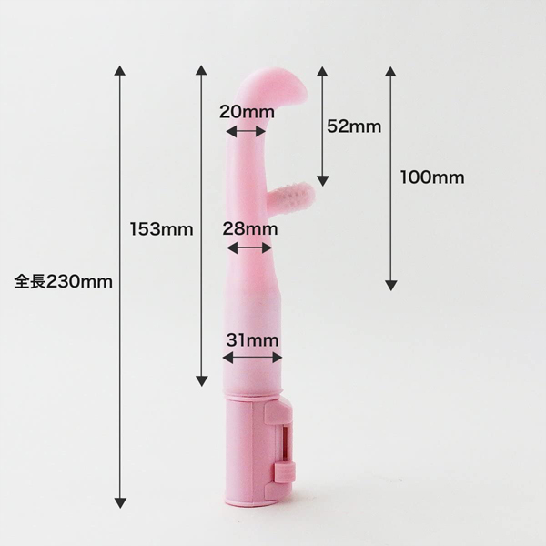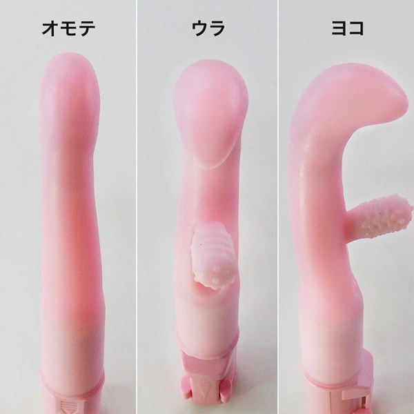 フック形状が最奥まで届いて絶頂へ導く!潮吹きを目指す女性に最適な振動機能付き電池式バイブ。逆L字型の先端が快感部分を刺激しつつ、中腹に突き出たイボ付きの専用突起は挿入時に後ろへ倒れ膣内にフィット、超微細な振動でクリとGスポを刺激する!細めでツルっと挿れやすく、エラストマー素材で柔らかく仕上げた初心者さんでも安心のバイブです。単四電池を4本使用