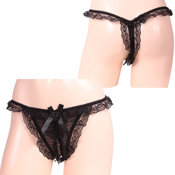 > レースの揺れ感が際立つオープンショーツ ブラック