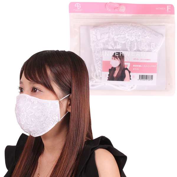 レースコーデと相性抜群!通気性の良いメッシュ地に白い薔薇刺繍レースを組み合わせたエレガントな大人用マスク。クッション性が高く柔らかな着け心地の三層構造仕立て♪速乾性に優れていることから蒸れにくく、抗菌加工で嫌なニオイもしっかり軽減!耳が痛くならず顔に合わせやすい調整式マスクです。不織布フィルター1枚付き※こちらの商品は受注発注商品の為、ご注文から発送までに3、4営業日掛かる場合が御座います。