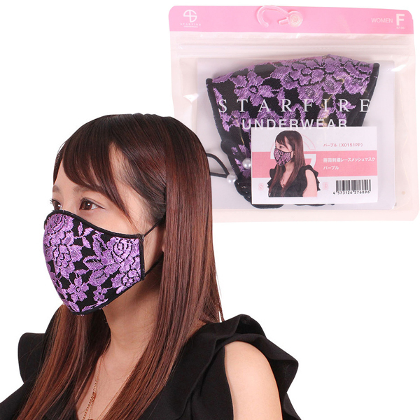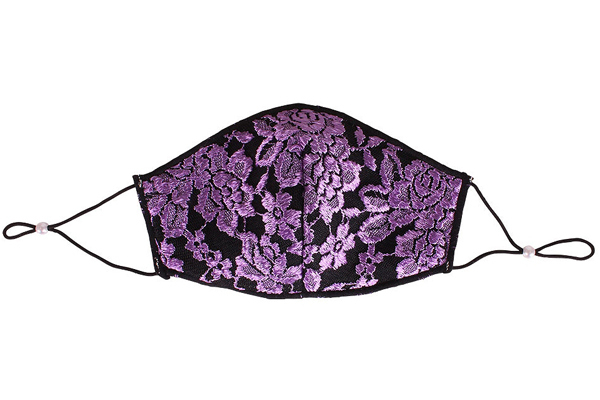 日々のマスクコーデに!紫の薔薇刺繍レースがお洒落な三層構造仕立ての大人用マスク。赤ちゃんにも優しいノンホルマリン加工を施し、クッション性が高く着け心地も柔らか♪また、メッシュ生地で通気性&速乾性にも優れているため、汗や蒸れによる化粧崩れにもしっかり対応!また、紐部分は調整式でフィットさせやすく、抗菌消臭仕様で気になる臭いも軽減します。不織布フィルター1枚付※こちらの商品は受注発注商品の為、ご注文から発送までに3、4営業日掛かる場合が御座います。