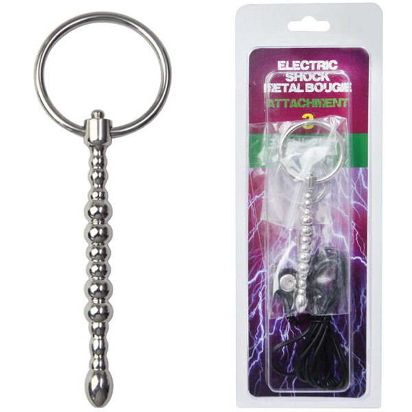 連続する球体が凸凹刺激をプラスする低周波パルスグッズ、エレクトリックショックシリーズの専用ブジーアタッチメント。サイズは挿入部約8cm、太さ0.5〜0.7cmほどで、ボディには重厚な金属メタルを採用!別売り本体「コックループ&ブジー(b29208)」に接続することでビリビリと痺れるような電撃を楽しめます。引き抜きやすいリング付き