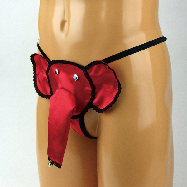 縁に黒レース加工を施したレッドカラーの鈴付きゾウさんGスト。インパクトのあるゾウさんデザインに光沢が加わることでより目立ち度アップ!ストリングタイプのゾウさんパンツです。日本製、Mサイズ
