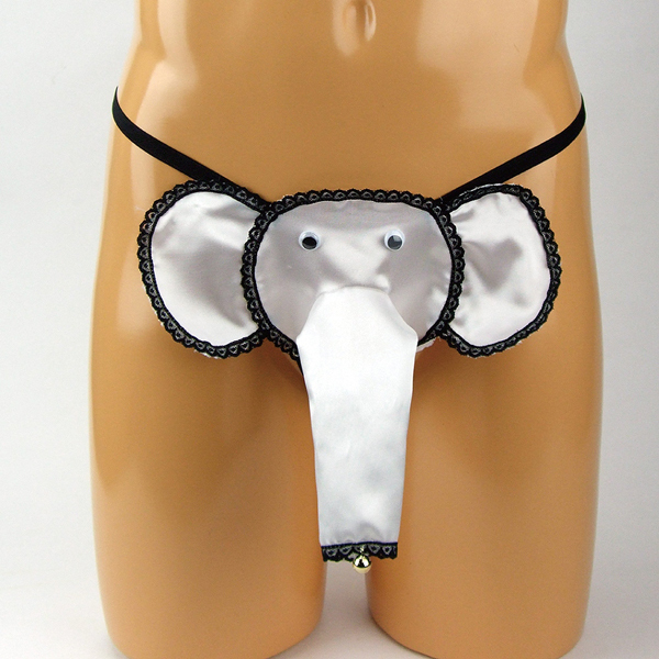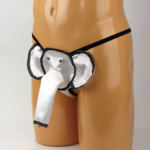 ホワイトカラーの光沢生地で仕上げたユニークなゾウさんGスト。股間を最大限にアピールできるストリング仕様!鼻の先端は鈴がついており、動くたびにリンリンと音を鳴らします。日本製、Mサイズ
