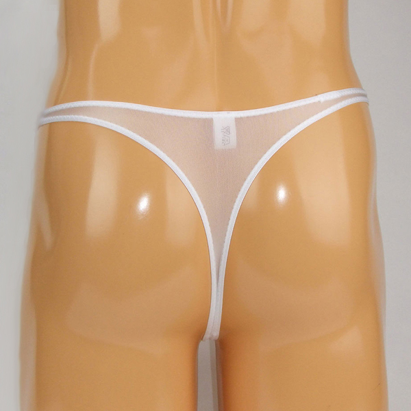 どこから見ても見えちゃう!男の象徴を曝け出す大胆なメンズ用シースルーTバック。下半身にフィットする伸縮性抜群なストレッチ素材を使用!T字デザインの大胆さに胸が高まります♪◎ホワイト、Mサイズ