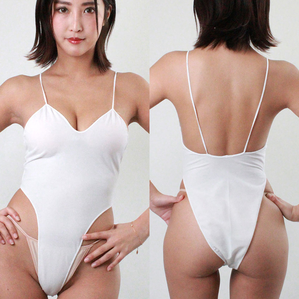 少し透け感があり、上下左右によく伸縮するサラサラとしたガーゼ生地を素材に使ったレオタードです。フロント部分は局部のカットがキワドイラインで入っていて、ボディにぴったりとフィットする素材感もプラスして大胆さは抜群!清潔感たっぷりのホワイトカワーにヒップの曲線、局部のきわどさ、タイトな着心地で他にはないギャップを演出してくれます♪いつもと違うプレイをしたいときや彼氏を誘惑したいときにもおすすめですし、大胆に色気を出したいときにも大活躍です。◎ホワイト、Mサイズ