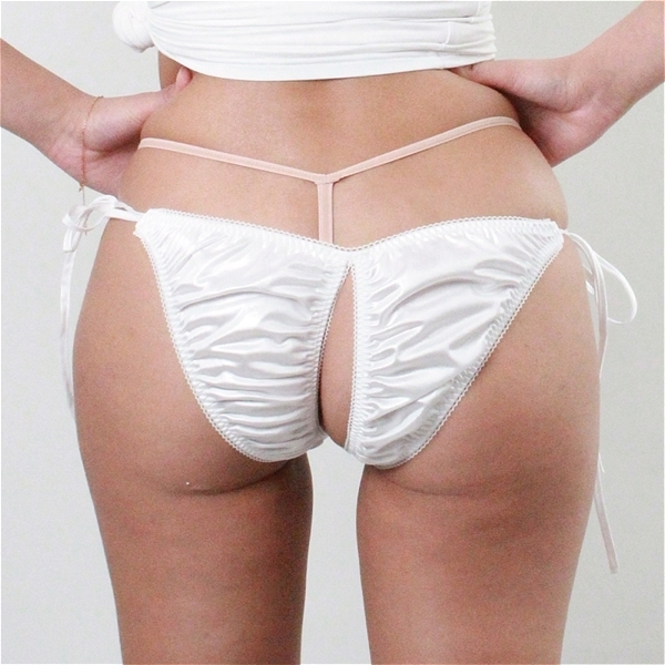> 光沢が有り肌触りの良い生地にレース付き脇ヒモ股ワレFB Lサイズ ホワイト