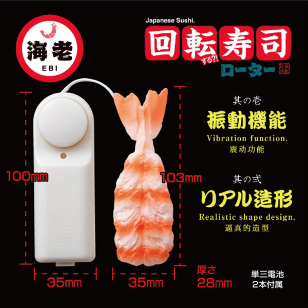 食いしん坊な方必見◎世界中で大人気の「寿司」がアダルトグッズになった!?ネタから米粒まで精巧に仕上げたリアル造形の海老寿司ローター。思わず二度見しそうなほど再現度高め!パッケージも寿司下駄風でこだわりを感じさせます♪振動機能付の電池式で、家でも外でも用途に合わせて使用可能!友人やパートナーへのユニークなプレゼントにも最適です◎単三電池を2本使用