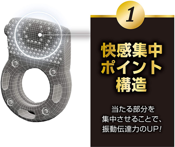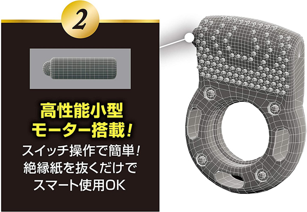 新感覚のペニス用振動リングが登場しました!バイブレーションリングとも呼ばれ、強力振動と特殊ハニカム構造が相乗効果を発揮します♪振動部がしっかり当たる前屈構造で、押し当てることで幅広突起部の多数の面が刺激します。1回使い捨てタイプで電池内蔵、連続振動時間は約20分♪コンドームの上に着用することで脱落防止にも効果的です。快感集中ポイント構造による高い振動伝達力が特長で、柔らかく伸縮性の高いエラストマー製でフィット感抜群です♪使用は簡単で、絶縁紙を抜きスイッチを入れるだけで直ぐに使えます!振動を集中させることでより快感を味わえるバイブレーションリングをぜひお試しください。