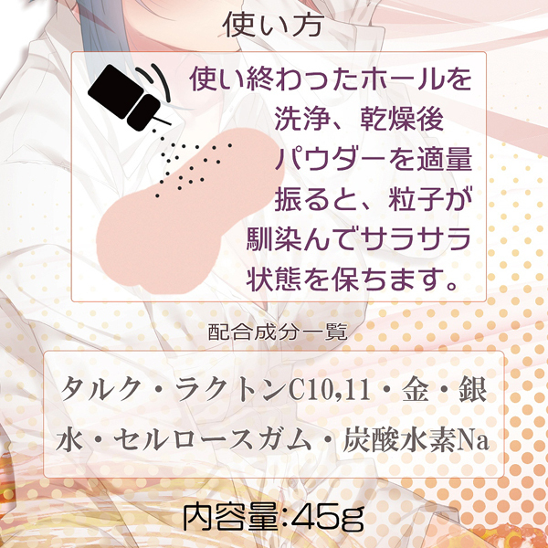 振りかければ自分のオナホールが全てオンナノコの匂いになる魔法の粉?!オナホ用パウダーは使用後のオナホを洗浄乾燥してべたつきが無くなる程度に振りかけて下さい。くれぐれも他のところ振りかけてオンナノコの匂いにしようとする事は、正しい使用方法ではありません。