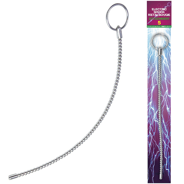 別売りの「エレクトリックショックコックループ&ブジー」に接続して好みのサイズで楽しめる「エレクトリックショックメタルブジー アタッチメント5」。前立腺までリーチする余裕のある長さの専用ブジーアタッチメントで、よくしなるビーズ状の超ロングボディは奥までしっかり挿入可能♪重厚感のあるマニア垂涎のメタルボディで、全体からビリビリと痺れる様な電撃低周波パルスにより本格的な尿道プレイをお楽しみいただけます。※本商品には接続コードは付属しません。