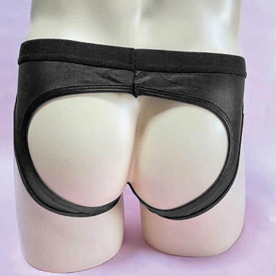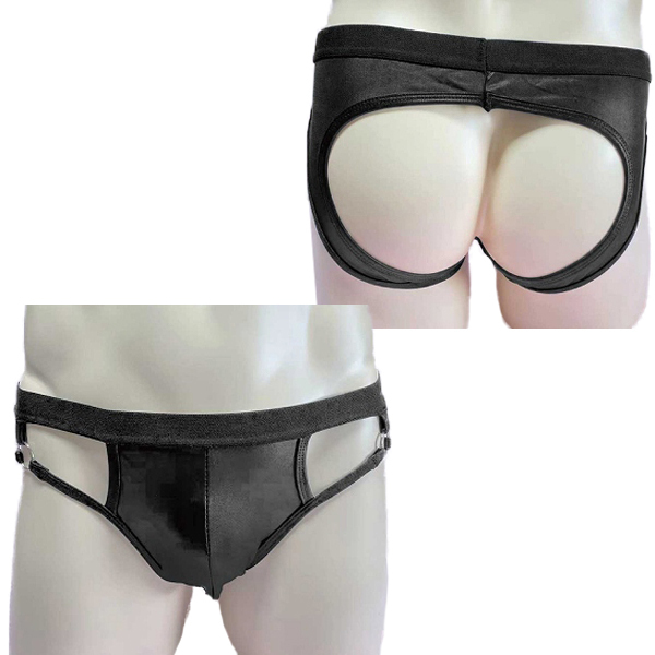 お尻部分がパックリ開いたセクシーなメンズショーツ!光沢のあるブラックカラーがカッコいいデザイン!しっかりとした縫製ではき心地抜群です。