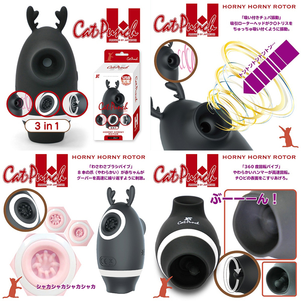 <USB充電>クリト〇ス吸引ローターに、2種類のニュータイプ性刺激ヘッドを追加した「3in1」ローター誕生。3種類の刺激が、コンパクトなボディを少し持ち変えるだけで楽しめます。強弱も「5段階」選択可能、3ヘッドと合わせて「合計15種類」のゼイタク仕様です。「吸い付きチュパ振動」吸引ローターヘッド「360度回転バイブ」ぐるぐる旋回振動ヘッド「わさわさブラシバイブ」高速わさわさヘッド