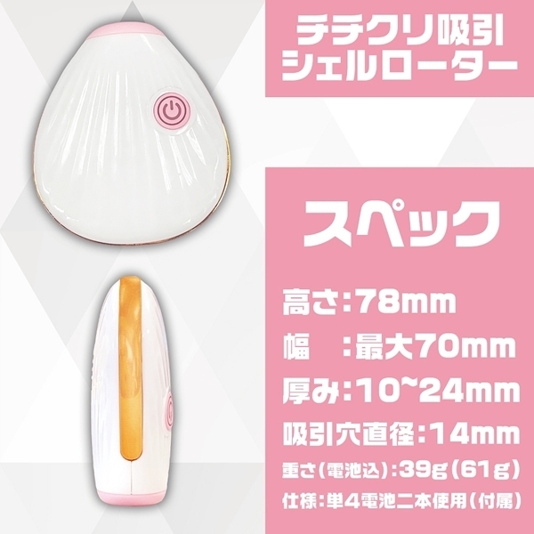 見た目がユニーク!貝殻のような形でコンパクトな「チチクリ吸引シェルローター」。クンニや舌での愛撫のような感覚が楽しめるので、クリや乳首などの凸部分にお使いいただけます♪5段階の吸引強弱機能でマックス毎秒100振動!軽くて持ち運びやすく、初心者から上級者まで幅広くお楽しみ頂けます。高速クンニでの舐めを体感するもよし、吸われる感覚を自分で調整しながらチクビ開発やクリ吸引の初体験にもどうぞ♪