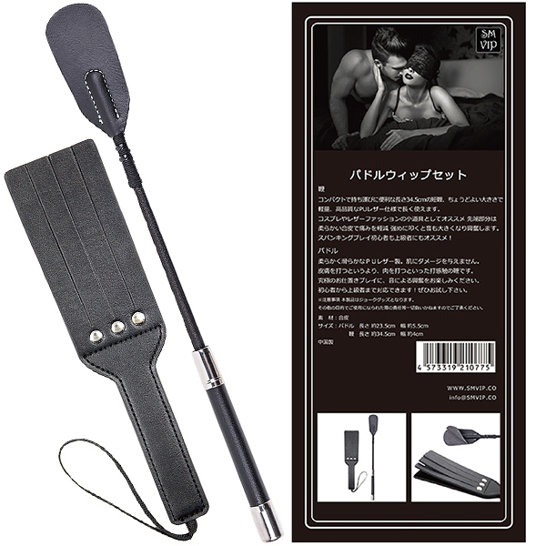 仕様:パッケージ:54.0×12.0×2.8cm パドル(23.5×5.5cm)・鞭(34.5×4.0cm)