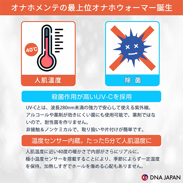 オナホウォーマーの悩みをまとめて解決!超強力UV−C除菌でクリーン&ホットなオナホを今すぐご提供!ケーブルのわずらわしさから解放するコードレスな魔法のスティックです!超強力UV−Cで除菌はばっちり。充電式コードレスで、どこにでも持ち運べて、しかも温度センサー内蔵だから、たった5分で人肌温度にしたあとは放置OK。