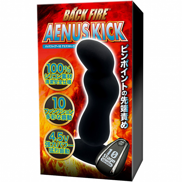 前立腺をバチッと直撃!段差の効いた挿入シャフトがたまらない「バックファイアー10アエナスキック」。特徴的な先端のアタック形状に強弱含む10パターンのバイブレーションが気持ちいい縦長なアナルプラグとなっています♪挿入シャフトの先端直下に内蔵されたモーターから多彩な振動パターンが楽しめる!的確に前立腺を刺激してくれて、メスイキを誘発しやすいアナルプラグ型バイブとなっています。底部からコードでつながったマウス型のコントローラーで電源は電池式です♪