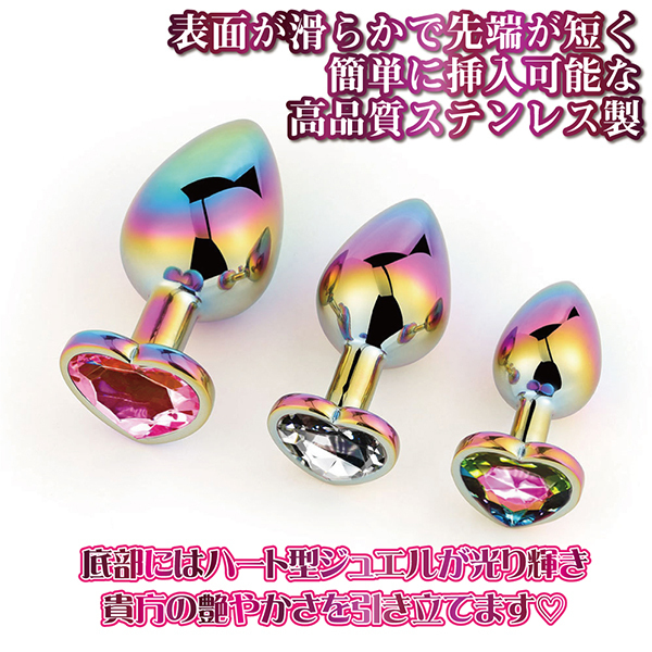 プレイスタイルに合わせて気分でチョイス♪マルチカラーハートプラグハート形のアナルプラグです。高品質なステンレス製で表面は滑らか!先端部分が短いため簡単に挿入ができ、使用後は綺麗に洗浄することができます♪収納袋付きで1つずつ収納できるため、すり傷などを防止できます。本品はジョークグッズとなります。その他の目的でご使用された際の責任等は一切負いかねますのでご了承ください。