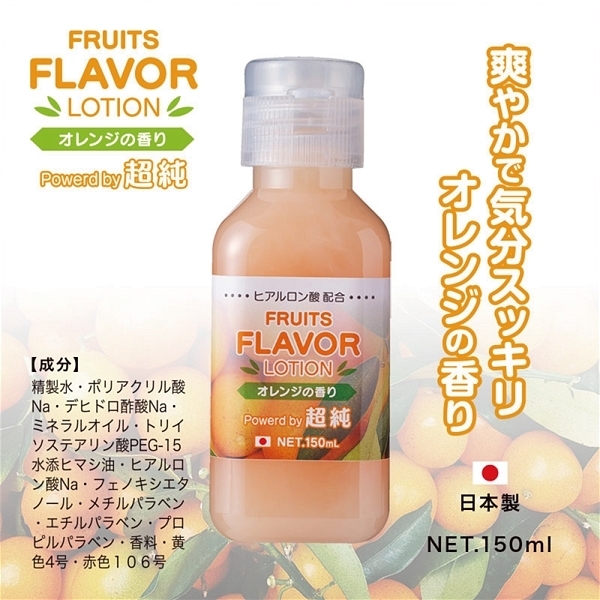 ローション選びに迷ったらコレで決まり!超純シリーズから人気のフルーツフレーバーローションが登場しました♪爽やかな甘い香りに仕上がっていて、滑らかな肌触りと適度な粘度があらゆるプレイにマッチします。国内の工場でしっかりとした管理体制の下で製造されているので安心!爽やかで気分スッキリ、オレンジの香りと柑橘系ならではの爽やかさがいつものプレイを盛り上げてくれます♪