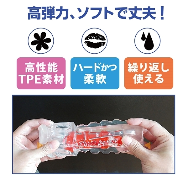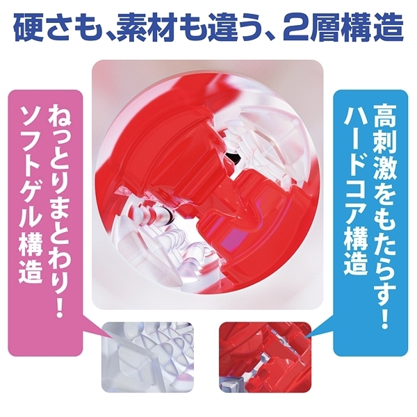 挿入直後からクリップされるように迫りだすコブとブロックのようなヒダの刺激がたまらない!2構造のインナーホールにソフトゲルが包み込むハードな内部構造体が刺激的な非貫通オナホ「CRYSTAL」。こちらは挿入直後からのコブやブロックのようなヒダ、最奥の尿道を突き刺すように待ち構える突起が特徴の超ハードな刺激タイプ!絞り込まれるような超快感をぜひお楽しみ下さい。ローション付。