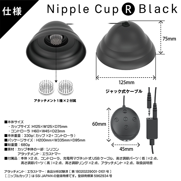 マグネット式USB充電式。人気バラエティ番組をはじめ、各種メディアで紹介されているニップルカップに、新色のブラックが登場。乳首開発とチクニーではニップルドームと双璧を成すこの製品。乳房をやさしく包み込むエルゴノミックなカーブは、あらゆるバストにジャストフィット。女性はもちろん、スポーツブラを愛用される男性にも固定しやすいデザインです。