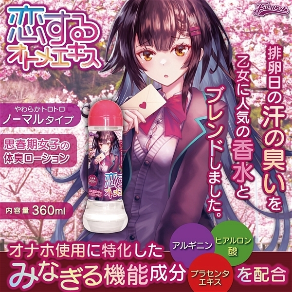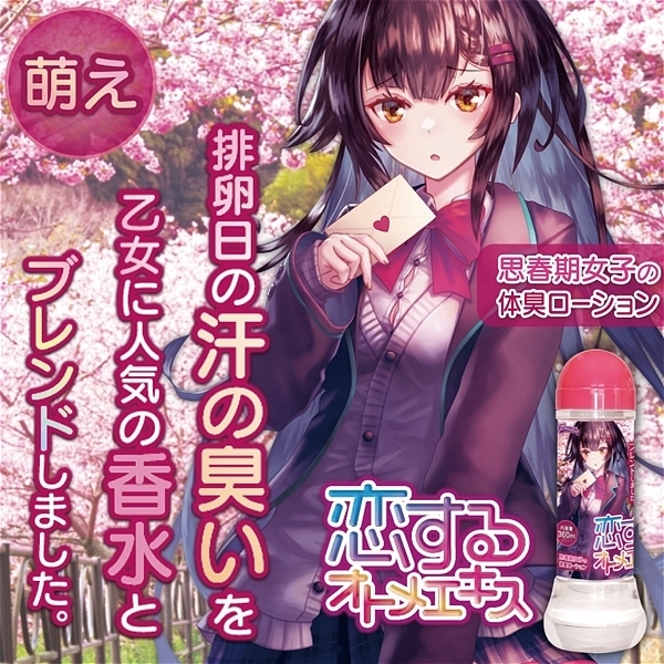 恋するオトメエキスは、思春期女子の体臭ローションです。排卵日の汗の臭い+乙女に人気の香水をブレンドした微香性。まるで思春期女子のような臨場感ある「香り」をお楽しみいただけます。加えて、成分にはオナホ使用に特化したみなぎる機能成分「アルギニン・ヒアルロン酸・プラセンタエキス」を調合。やわらかトロトロの粘度+思春期女子の匂い+みなぎり成分。