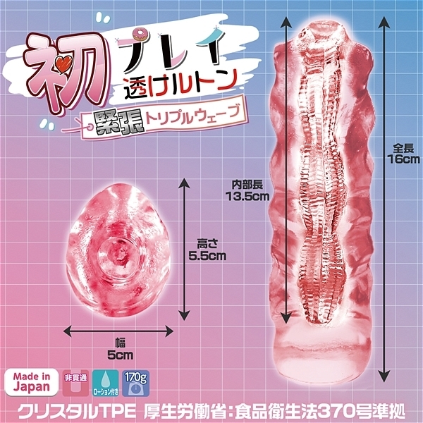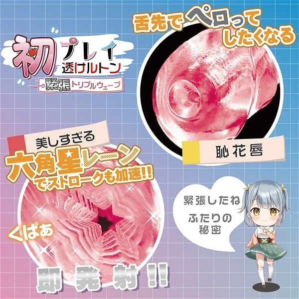 緊張して体に力が入ってしまう。そんな自然な硬さを再現。大人気「もちっ娘 透けルトン 生感トリプル・トゥーループ」の内部構造はそのままに初めての硬さを再現。六角形で作られた星型の内部構造は大きく3ブロックに分かれており、進む度にランダムな圧が波を打つ。緊張しているかのような硬さ×3連の波は何度でも試したくなる魅力があります。クリアピンクボディの見た目は美しさはもちろん、視認できるからとってもえちえち。