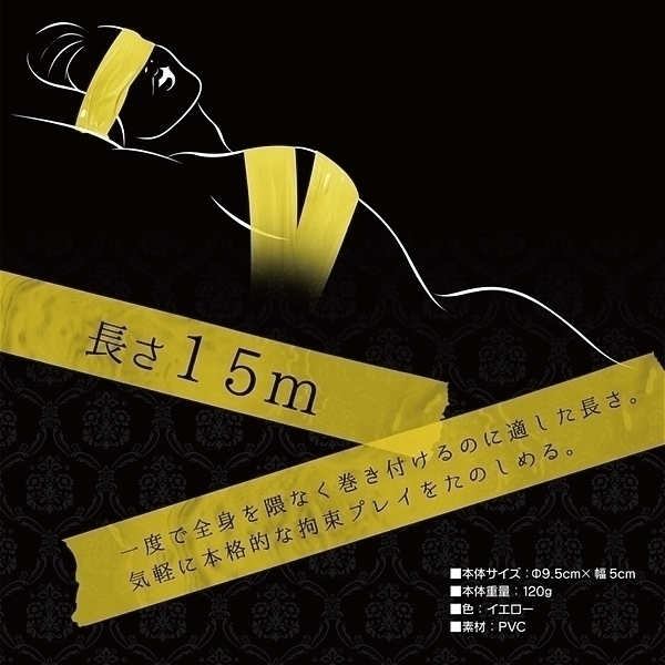 SMプレイの必須アイテム<ボンデージテープ>!気分で色を変えたいお客様の声にお応えし女体を彩る業界最多の7色をラインナップ!ノリを使わない万能テープで服や髪・肌を傷めず、お手軽カンタン拘束プレイ!濡れてもくっつく不思議な万能テープ科学の力でテープ同士が吸着。ベタつかないので片付けも簡単。髪や肌、繊細なグッズやテーブルにも安心して使えます。●カラー:イエロー
