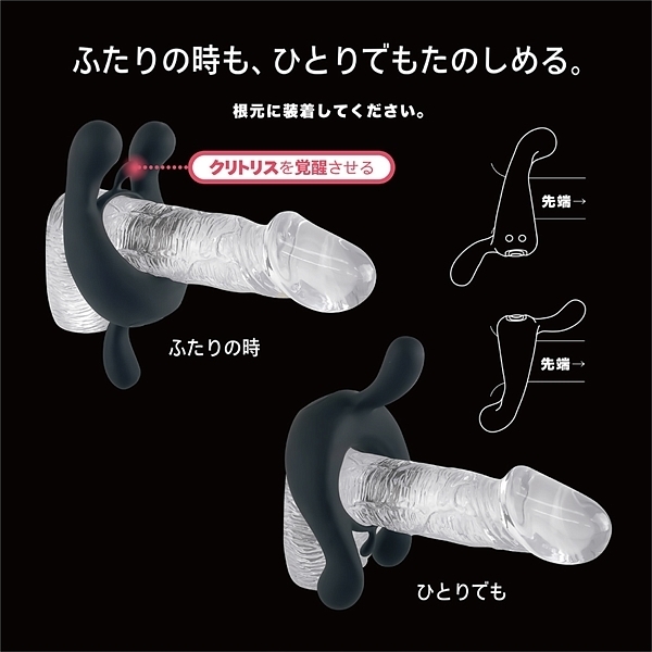 前戯からセックスまで、パートナーとのラブタイムを成功に導く<神の輪>。ソフトタッチのシリコンで、前戯にもセックスにも至高のエクスタシーをもたらします。二人で一緒に楽しんでもよし、パートナーを一方的に責めてもよし、さらにはソロプレイにも対応した、まさに神世の多機能ツールです。性感帯をゆさぶる極小ローターは3ヵ所に内蔵。