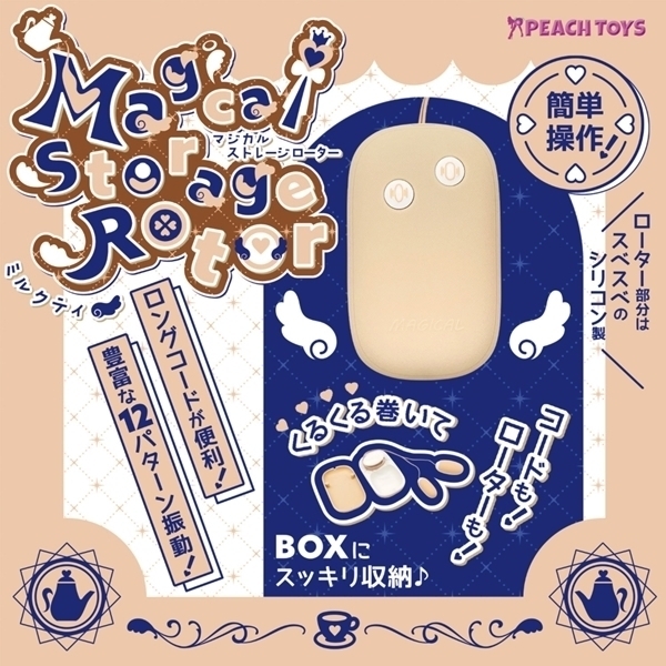 コードも!本体も!BOXにスッキリ収納♪ダブルローター!Magical Storage Rotor♪マジカルストレージローターの登場!70cmのロングコードが便利で使いやすい!豊富な12パターン振動!ボタンを押すだけの簡単操作!ローター部分はスベスベのシリコン製。ダブルのローターは、独立ボタンで、シングル使用もダブル使用も可能。くるくると巻いてコードも、ローターもBOXにスッキリ収納できちゃいます!●カラー:ミルクティー