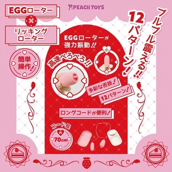 仕様:パッケージ:16.0×7.0×5.0cm 本体:収納時BOX10.0×6.0×3.5cm・EGGローター(小)4.6×2.0cm・リッキングローター5.0×2.5cm・コード長約70.0cm USB充電式